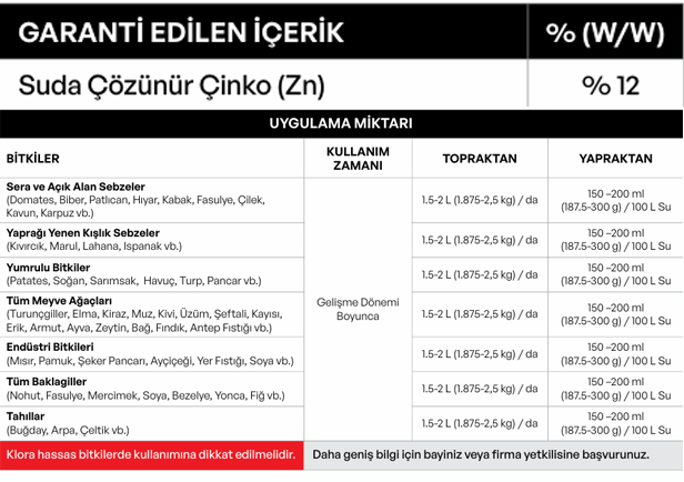 ÇİNKOLU GÜBRE ÇÖZELTİSİ (Çinko Klorür İçerikli)